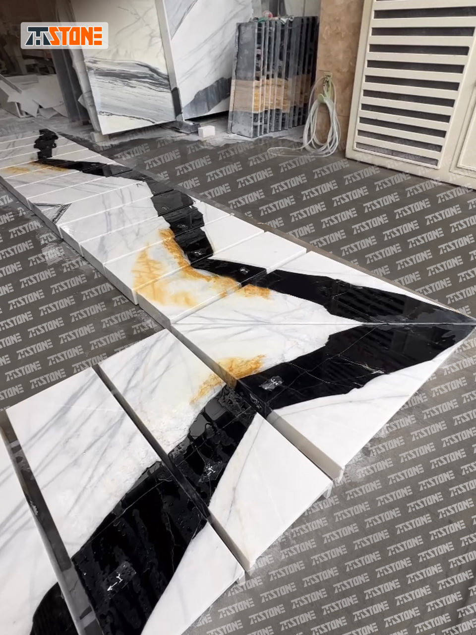 اجرا شده با سنگ پاندانصب پله : به صورت باکس کامل ( رو و زیر پلهها )ضخامت سنگ : دو سانتی مترنوع خدمات ارائه شده : اندازهگیری، مونتاژ و نصب پلهها