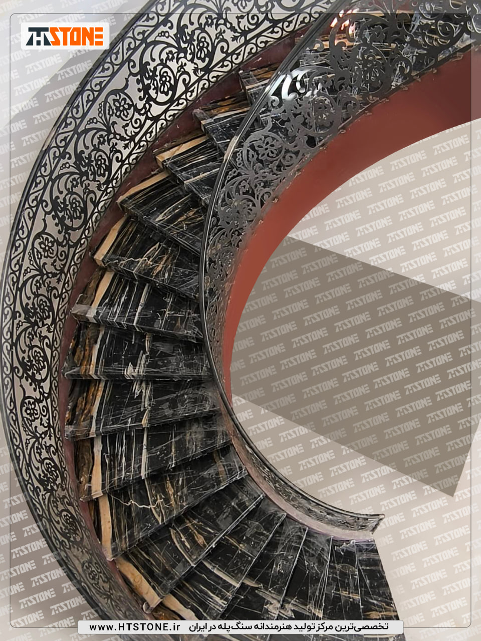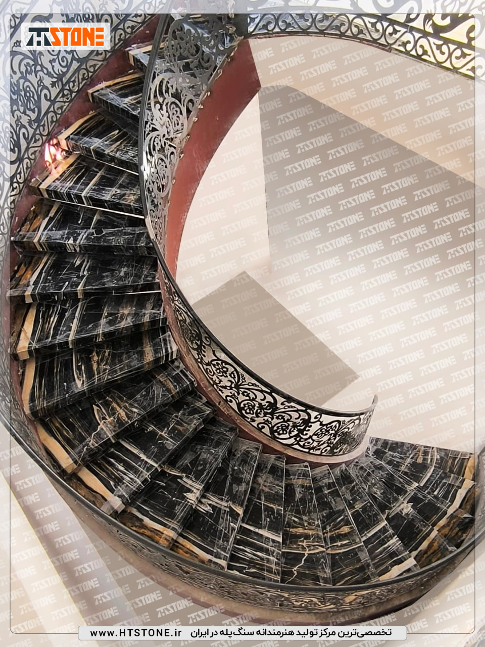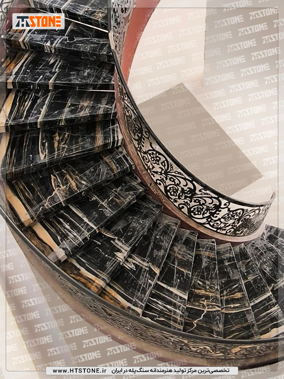 اجرا شده با سنگ دراگون نصب پله : به صورت باکس کامل ( رو و زیر پلهها ) ضخامت سنگ : دو سانتی متر سازه پله: فلزی فرم پله: پیچ نوع خدمات ارائه شده : اندازهگیری، مونتاژ و نصب پلهها